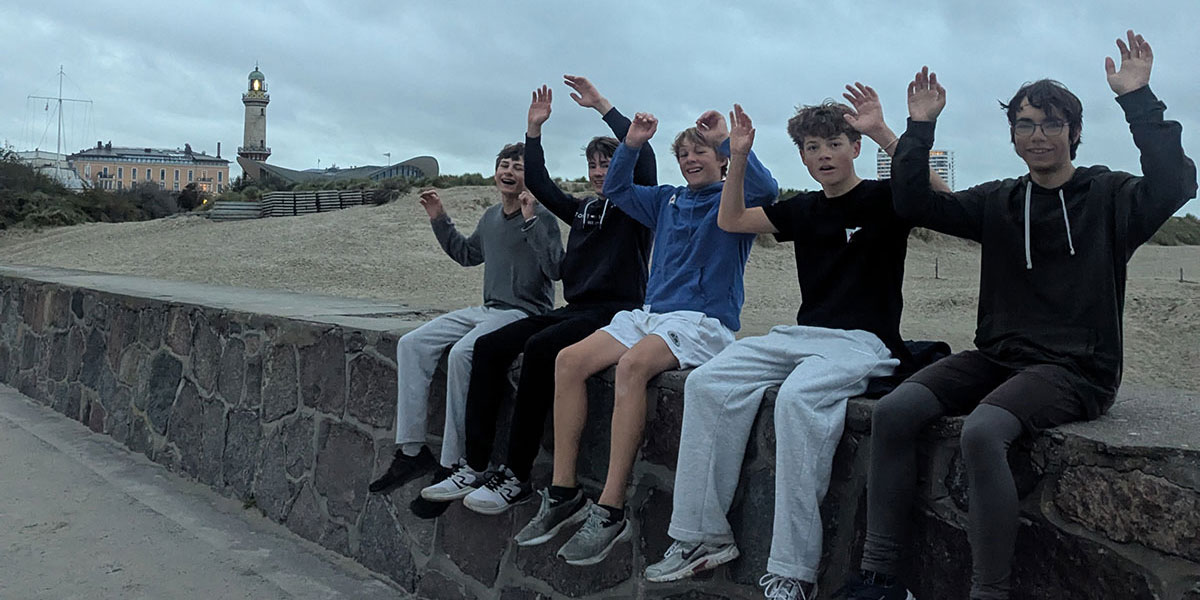 Am Sonntag, den 19.10.2025 ist unsere Gruppe, bestehend aus Jonas, Jasper, Joris, Julius, Henrik und unserer Trainerin Maria, ca. um 14 Uhr in Warnemünde an der Sportschule im Yachthafen angekommen.Anschließend haben wir unsere Boote und das dazugehörige Equipment abgeladen und unsere Taschen in die Zimmer gebracht. Jonas, Joris und Jasper hatten zwei angrenzende Doppelzimmer und Henrik und Julius waren zu zweit in einem Doppelzimmer, welches eine Etage tiefer lag. Die Sportschule wurde im Juni neu eröffnet und besitzt eine Mensa, Trockenraum, mehrere Seminarräume, eine große Bootshalle, einen Fitnessraum und sogar eine Sporthalle.Wir sind an dem Tag auch noch auf die Ostsee gefahren, um das Segelrevier kennenzulernen. Wir haben ein paar Manöverübungen gemacht und sind mit dem Sonnenuntergang wieder in den Hafen gefahren und haben uns in unseren Zimmern eingerichtet.Am nächsten Morgen haben wir uns um 7:30 getroffen und sind eine kurze Runde gejoggt, um schonmal warm zu werden. Nach dem Frühsport gab es um 8 Uhr Frühstück mit Brötchen, Saft und vielen Aufstrichen. Um 9:30 haben wir schließlich abgelegt und sind raus auf die Ostsee gefahren. An diesem Tag war sehr viel Wind aus Süd und wenig Welle (15-18 kn), weshalb wir unsere Fähigkeiten bei Starkwind verbessern konnten und auch das Wellenreiten auf dem Vorwind gezielt üben konnten. Mittags sind wir wieder rein gefahren und haben um 12 Uhr Mittagessen in der Sportschule bekommen. Danach sind wir um 14:15 wieder aufs Wasser gefahren und haben mit den Übungen vom Vormittag fortgefahren. Am Abend um 18 Uhr gab es dann Abendessen bei dem auch ein Teil warmes Essen war und haben anschließend eine Auswertung des Segeltages gemacht. Danach sind wir auf die Zimmer gegangen. Später am Abend haben wir als Gruppe noch ein Spiel gespielt. Der nächste Tag startete auch mit Frühsport, allerdings sind wir eine größere Runde gelaufen, bis zum Ende der Mole. In der ersten Trainingssession haben wir weiter unsere Manöver verbessert und in der zweiten Einheit am Nachmittag haben wir mit anderen Vereinen zusammen trainiert, hauptsächlich haben wir Starts und Startübungen gemacht.Am Mittwoch hatte Maria eine lange Einheit auf dem Wasser geplant. Der Morgen begann wieder mit Frühsport bis zur Mole, aber da wir an diesem Tag nur ein langes Training machen wollten, blieben wir bis 11 an Land und haben auf dem Wasser Kurse, Manöver und Starts geübt, allerdings alleine als Gruppe ohne andere Vereine. Da an dem Tag aber mal weniger Wind war, hat es mit dem langen Training gut gepasst. Gegen 17 Uhr kamen wir in den Hafen und dann gab es zum Abendessen Pizza, aber nur ein kleines Stück pro Person. Der Tag hat alle sehr erschöpft, weshalb wir nach einer Videoauswertung früher schlafen gegangen sind.Donnerstag gab es dann eine Pause vom Frühsport, allerdings wussten Jonas, Joris und Jasper nichts davon und sind trotzdem gelaufen. Nach dem Frühstück sind wir wie gewohnt rausgefahren und es war wieder viel Wind (13-15 kn). Am Vormittag haben wir einen langen Vorwind und eine lange Kreuz geübt und am Nachmittag bei weniger Wind noch einmal Startübungen. Am Abend haben wir uns noch Snacks für die Fahrt am Freitag gekauft und sind anschließend schlafen gegangen.