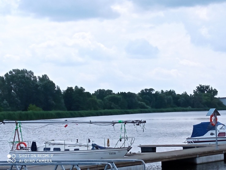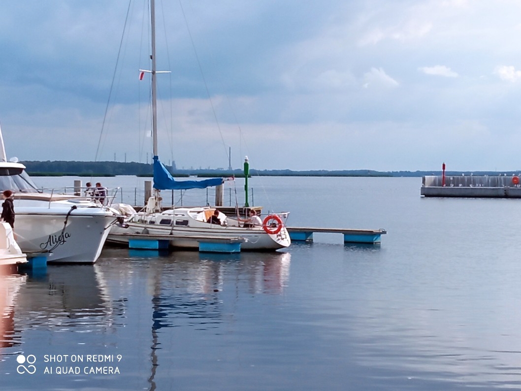 Am nordöstlichen Ufer des Dammschen Sees, ca. 10 km von Stettin, gibt es noch die Marina Lubcyna, die wir anlaufen können. Eher wenig Tiefgang auf der Karte, aber uns bleibt eigentlich nichts übrig, als dort hinzusteuern, festzumachen oder notfalls irgendwo zu ankern. Auf der Oder zwischen Haff und Stettin gibt es keine Stege zum festmachen. So in etwa läuft unsere Diskussion ab, wir haben wenig Akku zur Handynavigation und fahren weiter in diese Ungewißheit.