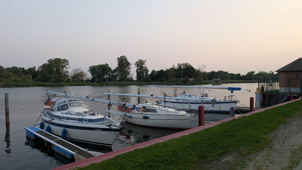 Von diesem Moment an schien die Reise bereits unter einem guten Stern zu stehen. Wir kamen zügig voran, schleusten schnell in Spandau und fuhren durch Tegel weiter mit rund 6 Knoten in Richtung Schleuse Lehnitz. Gegen 19 Uhr versuchte ich mehrfach, den Schleusenwärter telefonisch zu erreichen, um zu erfahren, wann wir mit einer Schleusung – etwa gegen 20 Uhr – rechnen könnten. Nach mehreren erfolglosen Versuchen gab ich auf und probierte es vor dem Lehnitzsee per UKW-Funk.