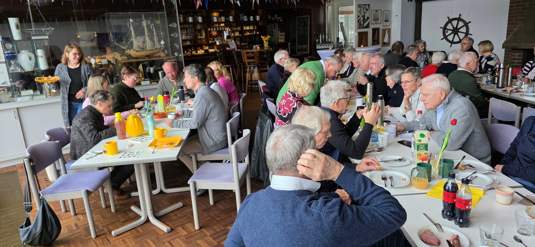 Ökonomie geschlossen, nichts los, also Januar/Februar Neujahrsbrunch , könnte klappen. Und es hat geklappt: 2020 und 21 musste aus bekannten Gründen ausfallen, 22 ging es wieder los. Und auch dieses Jahr war ein voller Erfolg: ca. 60 Mitglieder haben sich offensichtlich wohl gefühlt, Hintergrundmusik unseres Vorsitzenden, Kaminfeuer und ein phantastisches Buffet gaben den richtigen Rahmen für Gespräche, Diskussionen und das erste Regatta Start-Up in diesem Jahr. Ca. 10 Mitglieder haben krankheitsbedingt abgesagt, wären aber gerne dabei gewesen, sicherlich dann im nächsten Jahr.